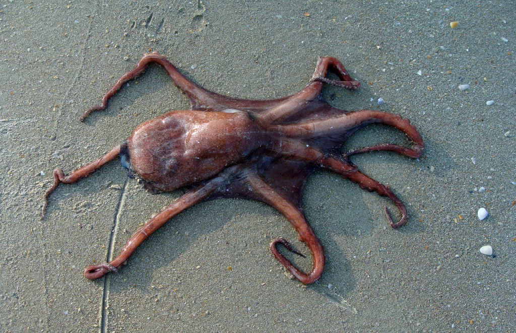 Bläckfisken hittades på 70-80 meters djup. Den har 8 armar och är väldigt stor. Den är ungefär 1 meter lång från toppen av en arm till en annan. Arten heter virvelkrake.