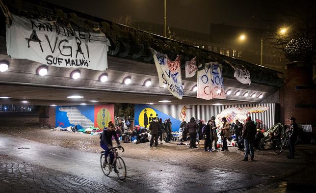 Migrantlägret i Malmö är nu tömt. Där bodde EU-migranter som kommit till Sverige. Vi har skrivit om det tidigare. Många demonstrerar utanför Stadshuset. De gillar inte att polisen tömt lägret.