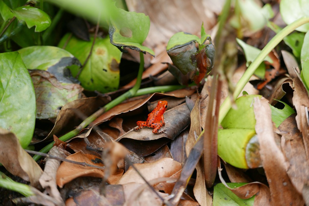 En röd pilgiftsgroda.