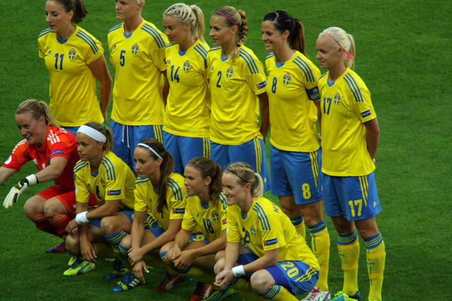 Svenska damlandslaget i fotboll spelar